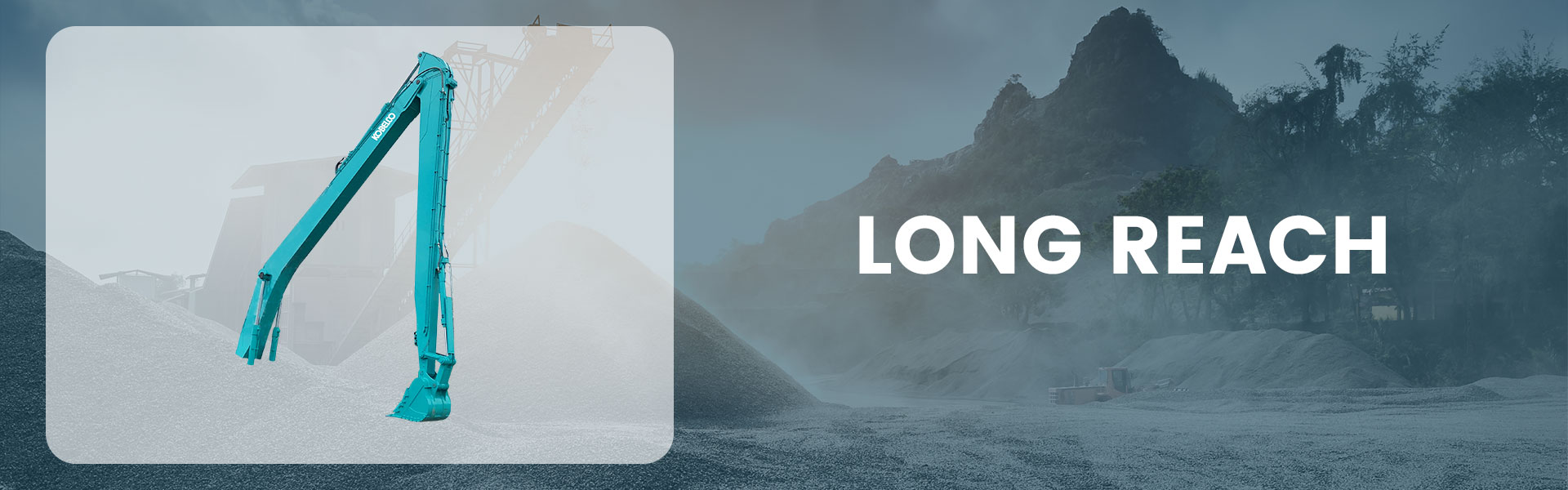 The Long Reach attachment widens the possibilities and enhances the capabilities of various Kobelco Excavators enabling them to take on tasks such as River & Sea Dredging, Deep Foundation Excavation, Pond Maintenance, Canal Maintenance, Dam Construction, etc.
