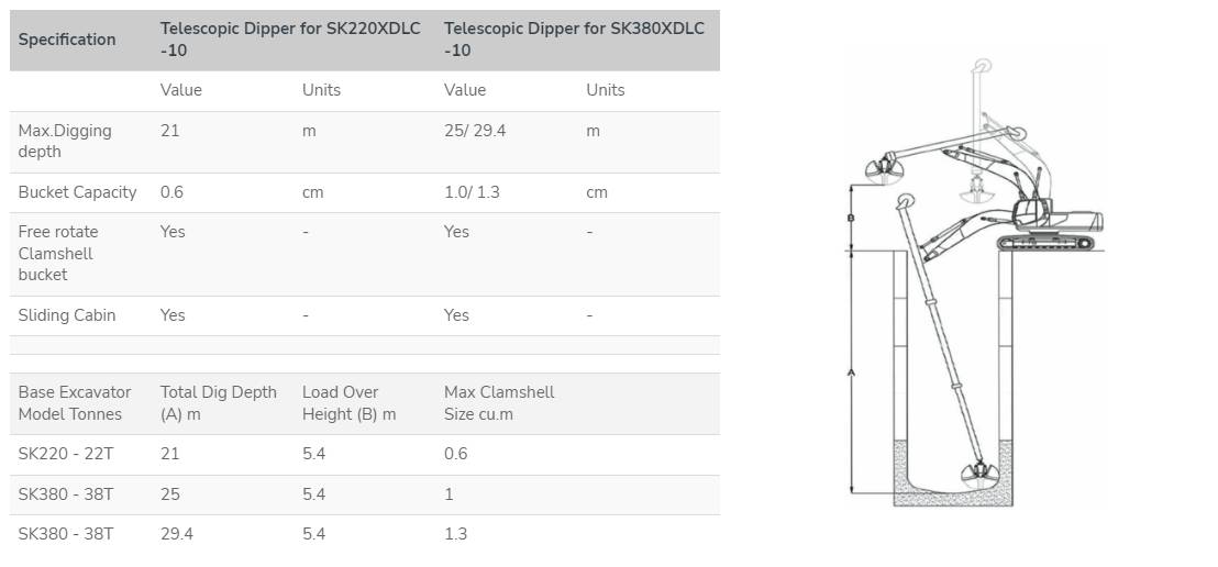 The Telescopic Dipper attachment helps in lifting materials and resources from deep holes and trenches, demucking, metro construction applications & foundation work.